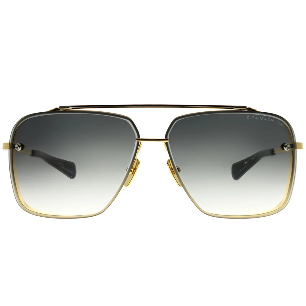 Dita Mach-Six DT DTS121-62-01 Unisex Gold Dark Grey Gradient Lens Sunglasses Frame Color – Gold Frame Style – Aviator Frame Material – Metal Lens Color – Dark Grey Gradient Lens Protection – UV Protected Includes – Dita box, case, cloth and paperwork *may vary from picture Size – Lens 62 mm x bridge 12 mm x arms 130 mm