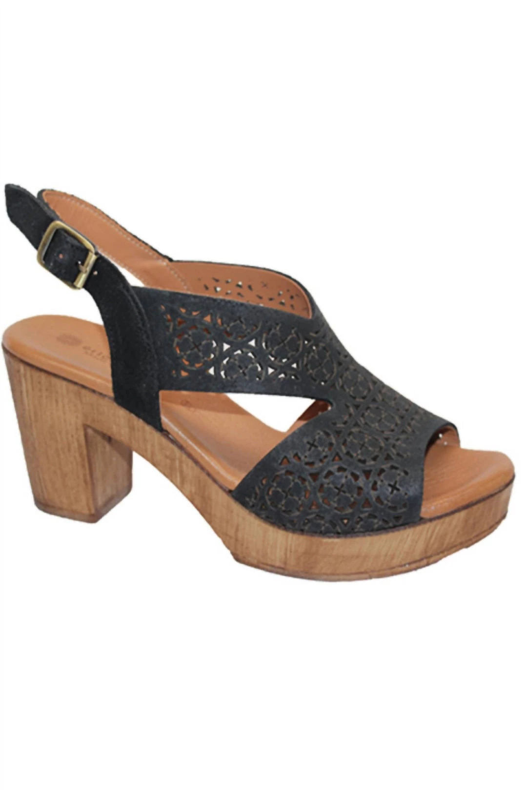 Laser cut leather 3 inch heel on a platform