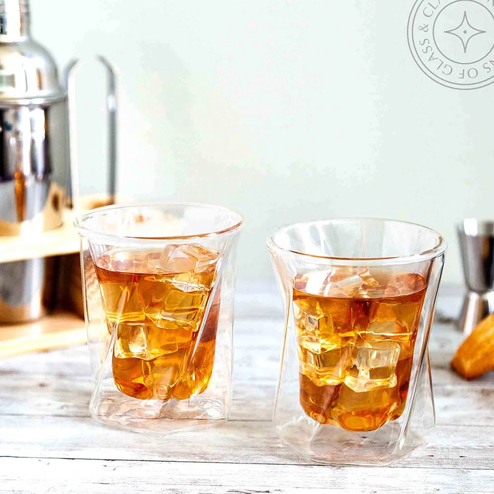 Our uniquely designed whiskey glasses are made with top quality insulated borosilicate-glass. The glasses s have a beautifully crafted design with a smooth crystal clear finish. Wonderful addition to any cafe, restaurant, or your own home. Microwave, Dishwasher, Oven and Freezer safe (up to 350°F are safe; not for use with metal utensils)
